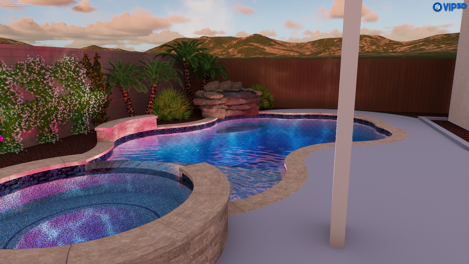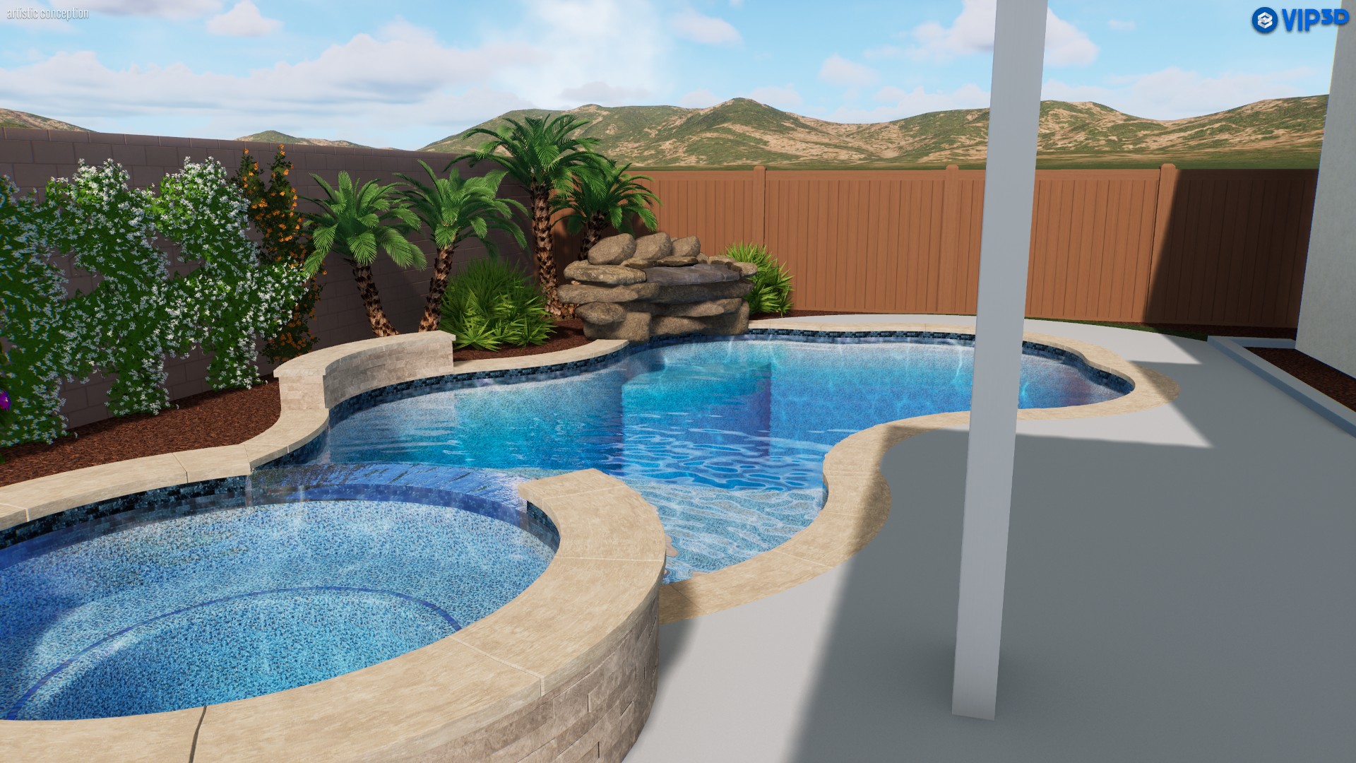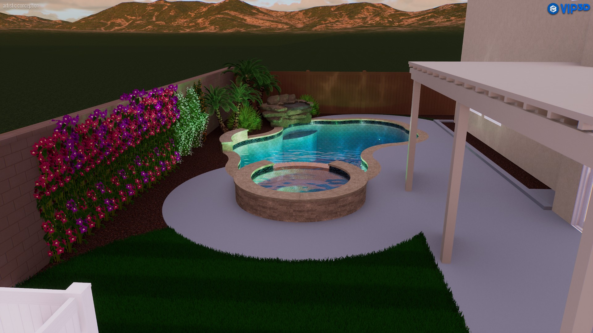 This one was nice and straight forward. Customer knew exactly where they wanted their spa and exactly where they wanted their rock feature. For me it was easy because everywhere I still had tom after all that I designed the water to go there.