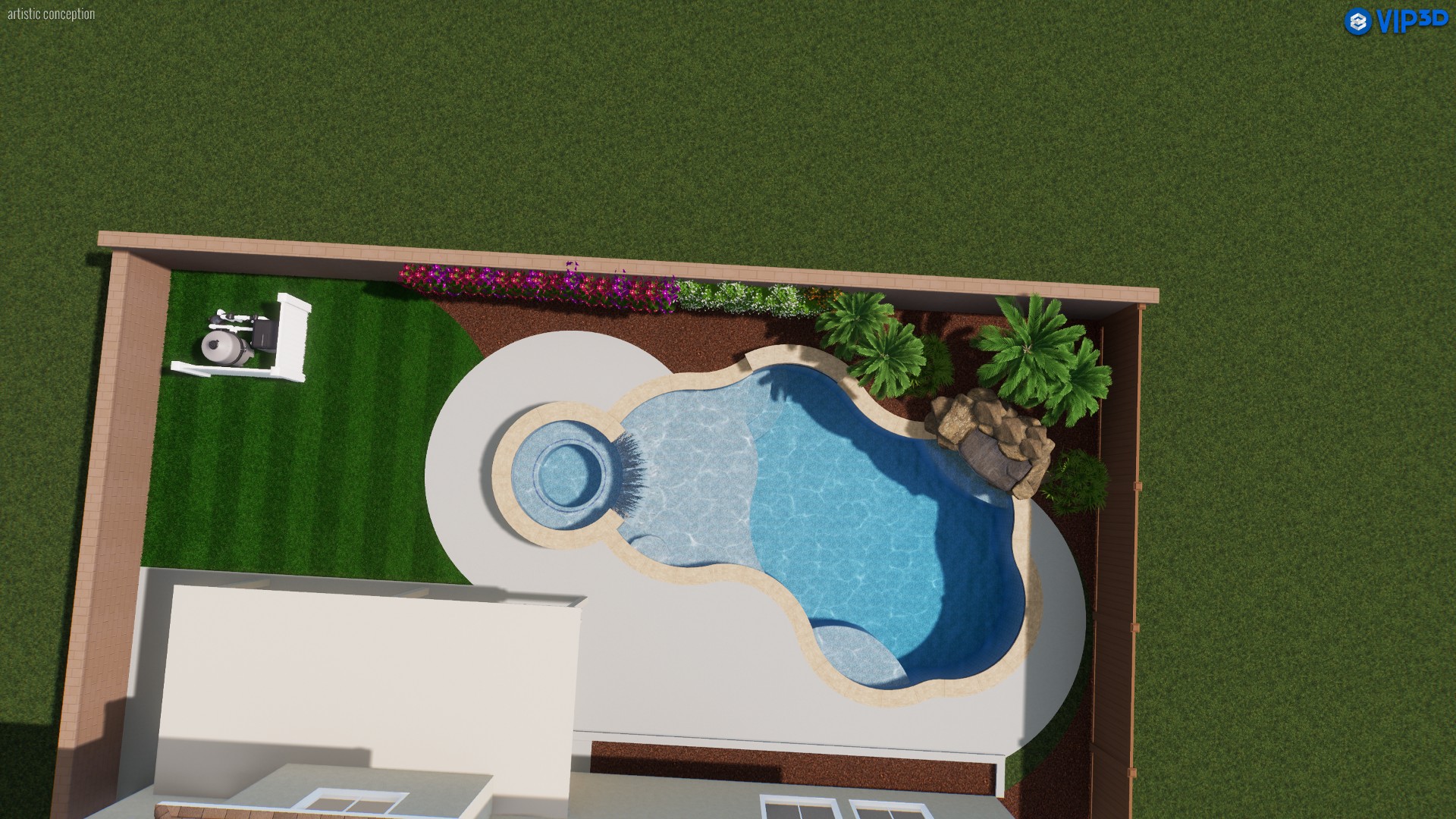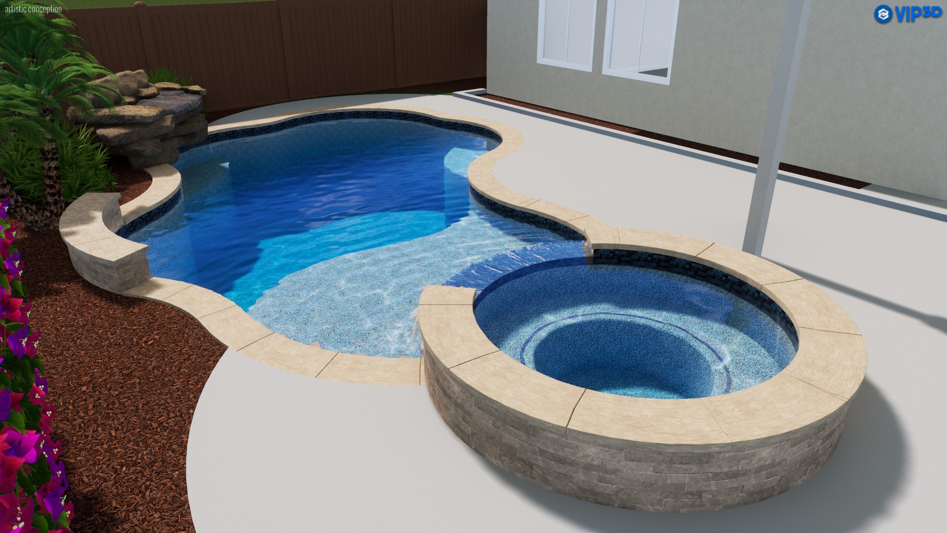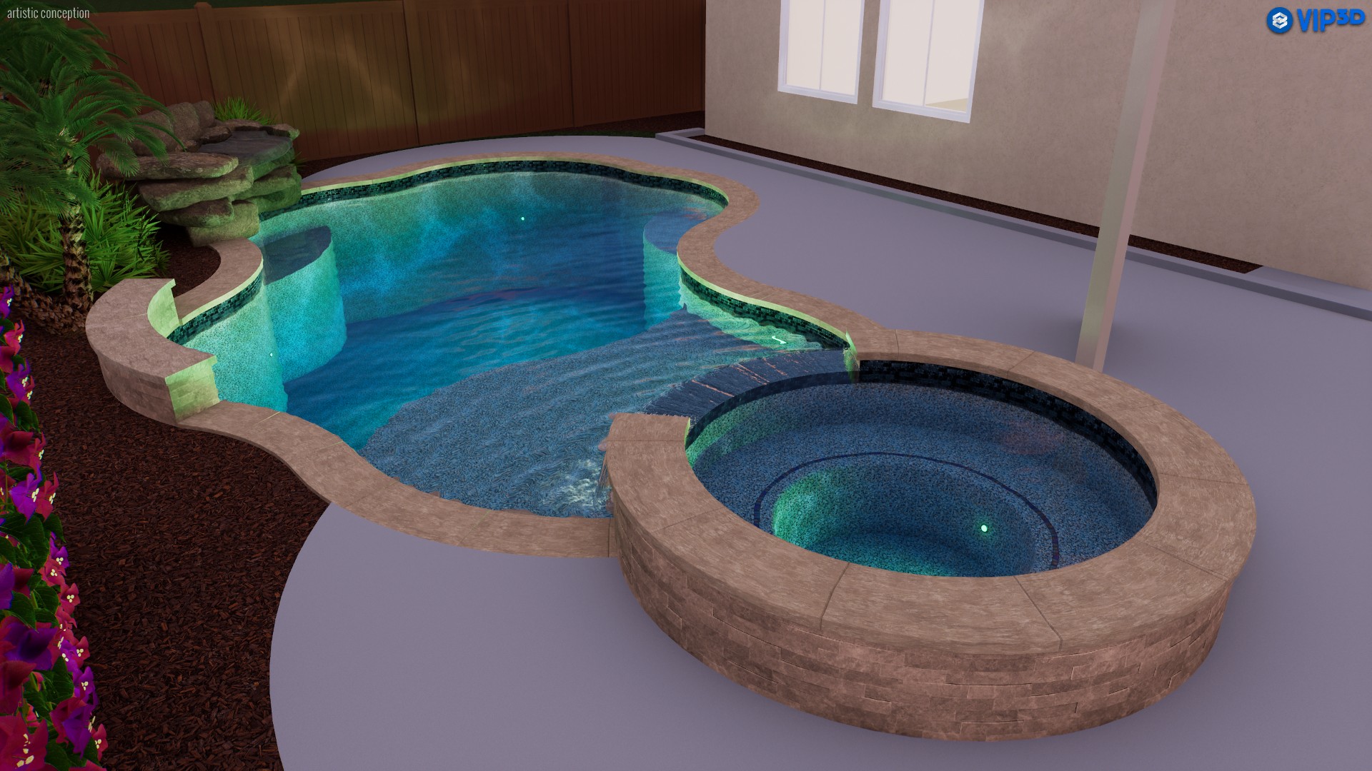 This one was nice and straight forward. Customer knew exactly where they wanted their spa and exactly where they wanted their rock feature. For me it was easy because everywhere I still had tom after all that I designed the water to go there.